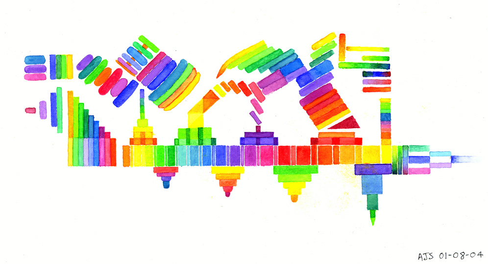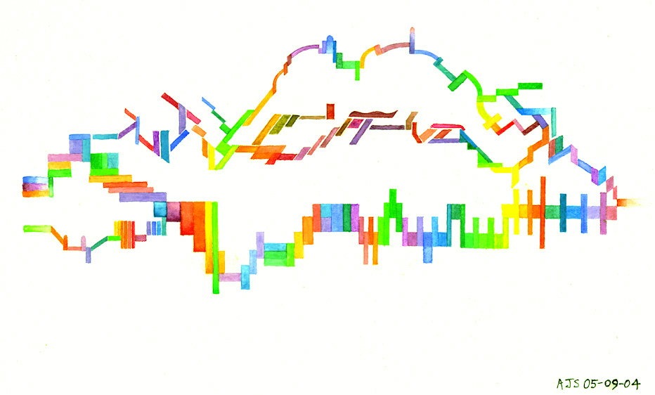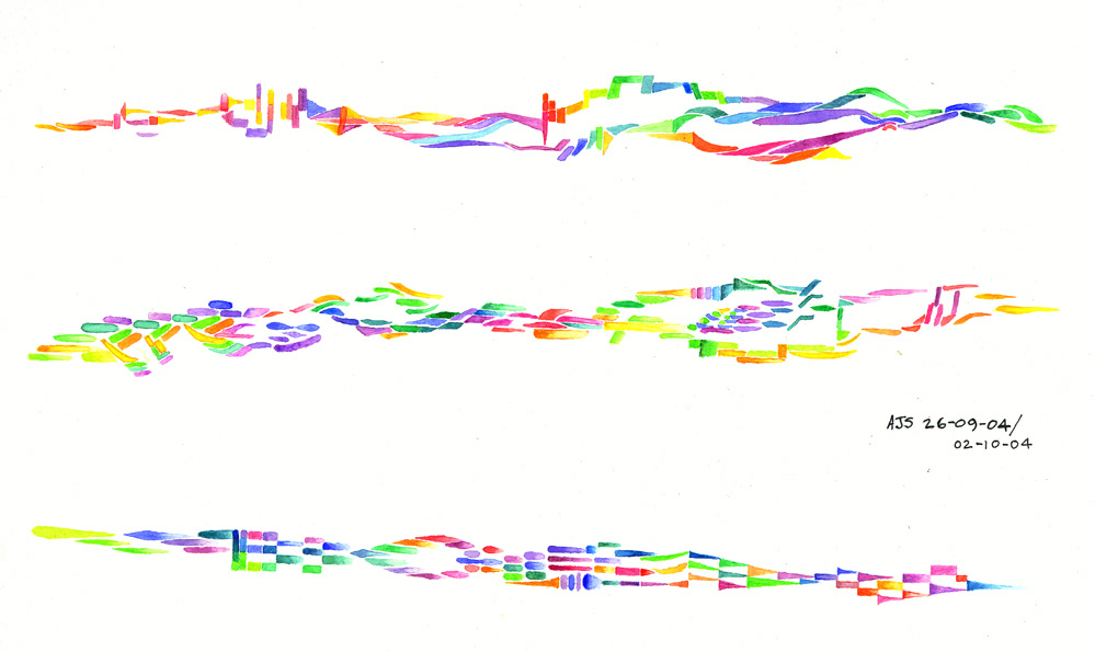 While living in London (2003 - 2004) I had little space to work and so I was forced to work on a small scale. Working in watercolour I find, is a good way to explore ideas quickly and still have the flexibility to use colour, texture and gesture; which are important common aspects of both painting and music. |